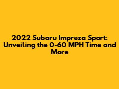 Hey car enthusiasts! Ever wondered about the 2022 Subaru Impreza Sport's acceleration prowess? You've landed in the right spot! We're diving deep into the 0-60 mph time, performance specs, and what makes this sporty compact a fun ride. Buckle up, because we're about to explore everything related to the 2022 Impreza Sport and its capabilities.