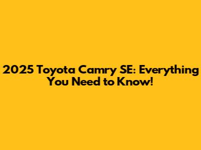 2025 Toyota Camry SE: Price, Features, And More!