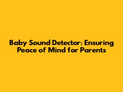 Baby Sound Detector: Ensuring Peace Of Mind For Parents