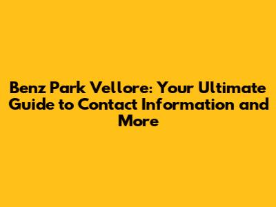 Benz Park Vellore: Contact Info & Essential Details