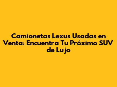 Si estás buscando un SUV de lujo que combine fiabilidad, rendimiento y un diseño elegante, entonces las camionetas Lexus usadas son definitivamente una opción que deberías considerar. Lexus, la marca de lujo de Toyota, se ha ganado una reputación mundial por construir vehículos excepcionales que duran y ofrecen una experiencia de conducción premium sin romper el banco. Comprar una Lexus usada no solo te permite acceder a un vehículo de alta gama a un precio más asequible, sino que también te beneficias de la legendaria ingeniería y calidad de construcción que caracteriza a esta marca. En este artículo, vamos a sumergirnos en todo lo que necesitas saber si estás pensando en comprar una camioneta Lexus de segunda mano. Desde los modelos más populares hasta consejos clave para hacer una compra inteligente, te guiaremos en cada paso del camino. Así que, ¡abróchate el cinturón y prepárate para descubrir por qué una Lexus usada podría ser la joya que tu garaje está esperando!
