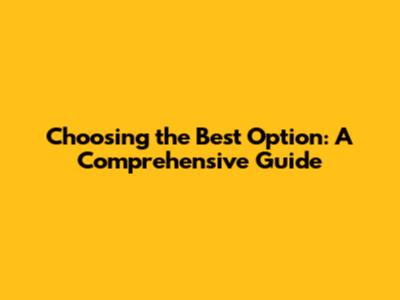 Choosing The Best Option: A Comprehensive Guide