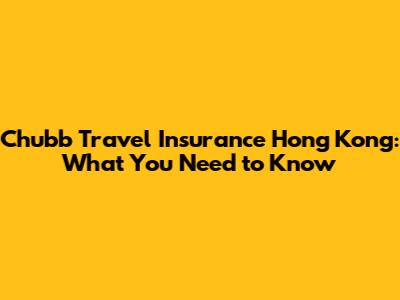 Chubb Travel Insurance Hong Kong: What You Need To Know