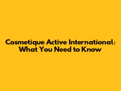 Cosmetique Active International: What You Need To Know