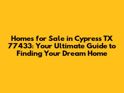 Hey there, future Cypress residents! If you're on the hunt for homes for sale in Cypress, TX 77433, you've landed in the right spot. Cypress is an amazing community and a fantastic place to call home. This guide will walk you through everything you need to know about navigating the real estate market in this popular Houston suburb. From understanding the neighborhood vibes to uncovering the best deals, we'll cover it all. So, grab a coffee (or your beverage of choice), get comfy, and let's dive into the world of Cypress TX 77433 real estate!