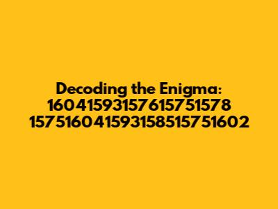 First, let's focus on the initial part of the sequence, which is 16041593157615751578. This number is quite large, but we can start by looking for internal patterns. We should try to see if there is any repeated appearance of any number. Next, let's explore 1575! This segment looks interesting. Could this be a code, or does it have an independent meaning of its own? It's important to keep an open mind to whatever might come our way. And finally, let's not forget the second part of the sequence, which is 16041593158515751602. Again, we'll start by looking for patterns, repetitions, or any immediately recognizable patterns. This helps us to get a feel for what the number sequence is all about. This first level of separation and examination will give us the base we need to get a deeper understanding.