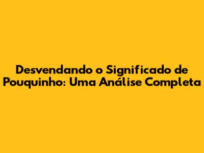O Que é 'Pouquinho'? Uma Definição Detalhada