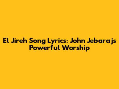 El Jireh Song Lyrics: John Jebaraj's Powerful Worship