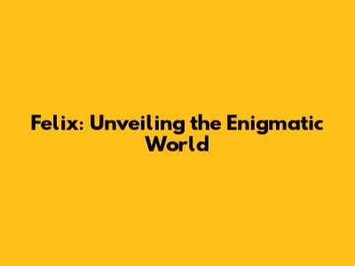 Felix: Unveiling The Enigmatic World