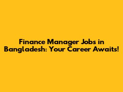 Finance Manager Jobs In Bangladesh: Your Career Awaits!