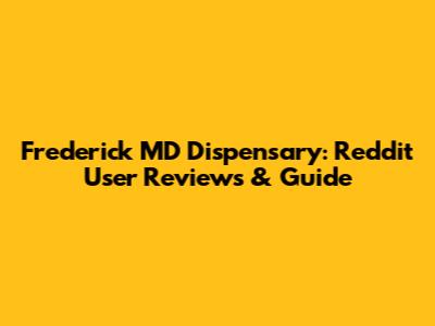 Frederick MD Dispensary: Reddit User Reviews & Guide