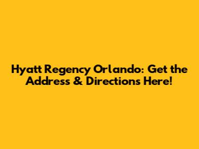 Hyatt Regency Orlando: Get The Address & Directions Here!
