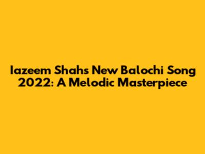Iazeem Shah's New Balochi Song 2022: A Melodic Masterpiece
