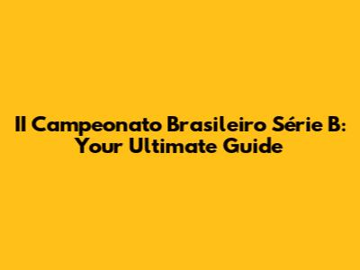 II Campeonato Brasileiro Série B: Your Ultimate Guide