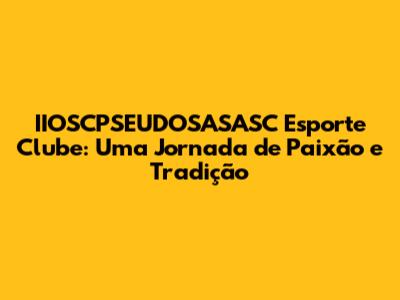 As Raízes do IIOSCPSEUDOSASASC Esporte Clube: Onde Tudo Começou