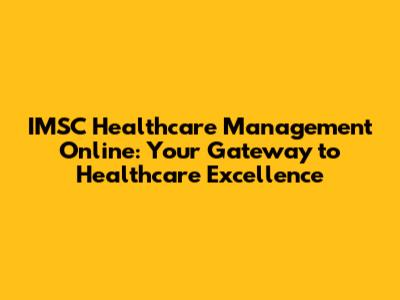 IMSC Healthcare Management Online: Your Gateway To Healthcare Excellence