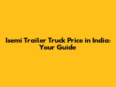 Isemi Trailer Truck Price In India: Your Guide