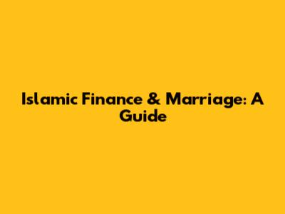 Islamic Finance & Marriage: A Guide