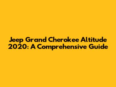 Jeep Grand Cherokee Altitude 2020: A Comprehensive Guide