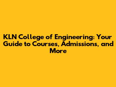 KLN College Of Engineering: Courses, Admissions, And More