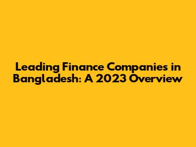 Leading Finance Companies In Bangladesh: A 2023 Overview