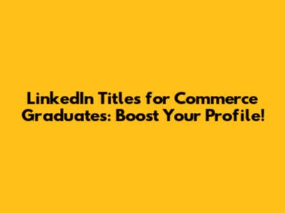 LinkedIn Titles For Commerce Graduates: Boost Your Profile!