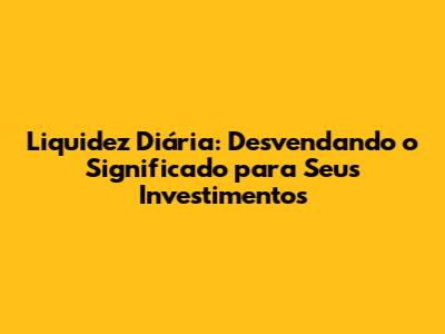 Liquidez Diária: Entenda O Que Significa