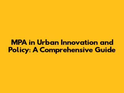 MPA In Urban Innovation And Policy: A Comprehensive Guide