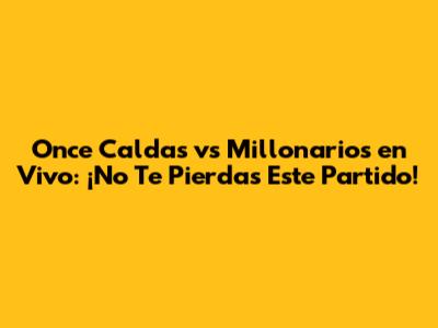 ¿Dónde Ver el Partido Once Caldas Millonarios en Vivo Gratis?
