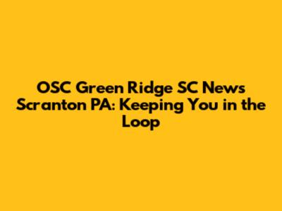 OSC Green Ridge SC News: Updates & Community Buzz
