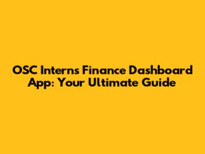 Why the OSC Interns' Finance Dashboard App is a Game Changer