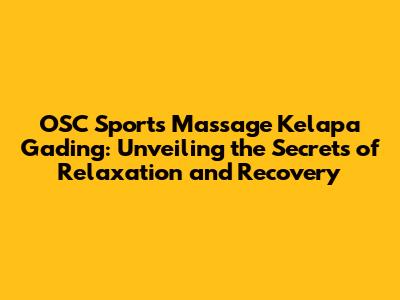 OSC Sports Massage Kelapa Gading: Your Guide To Relaxation
