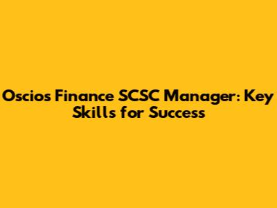 Oscios Finance SCSC Manager: Key Skills For Success