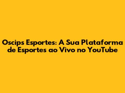 Com as Oscips Esportes, o esporte está literalmente na palma da sua mão, pronto para ser desfrutado a qualquer hora e em qualquer lugar. Então, prepare a torcida, convide os amigos e aproveite o show! O mundo dos esportes está esperando por você no YouTube! E aí, bora assistir?
