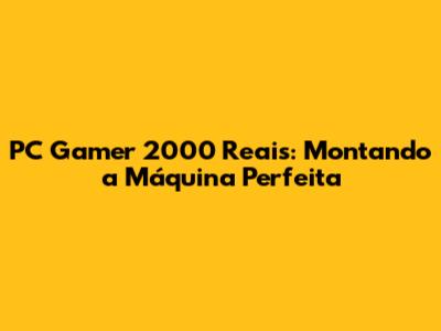 PC Gamer 2000 Reais: Montando A Máquina Perfeita
