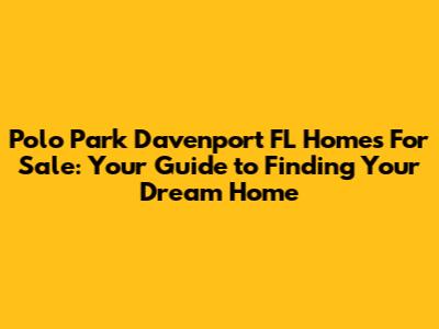 Hey there, future homeowner! Are you dreaming of a life filled with sunshine, theme park adventures, and a close-knit community? Then Polo Park in Davenport, Florida, might just be the place you've been searching for. This amazing community offers a fantastic lifestyle, with beautiful homes and a location that puts you right in the heart of all the action. This guide will walk you through everything you need to know about homes for sale in Polo Park Davenport FL, from the neighborhood's highlights to tips for finding the perfect property. Let's dive in, shall we?