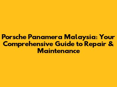 Porsche Panamera Malaysia: Ultimate Guide To Repair & Maintenance