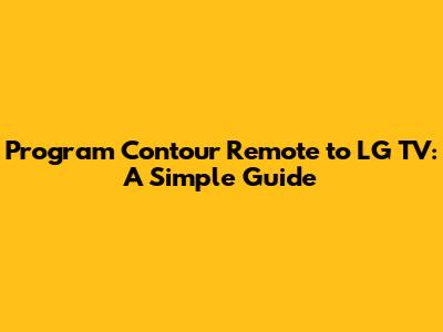 Program Contour Remote To LG TV: A Simple Guide