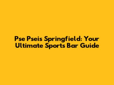 Pse Pseis Springfield: Your Ultimate Sports Bar Guide