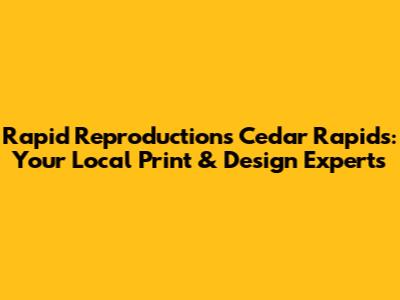 Hey guys! Are you searching for top-notch printing and design services in Cedar Rapids? Look no further! Rapid Reproductions Cedar Rapids is your one-stop shop for everything from business cards to large-format banners. Let's dive into why they're the best choice for your next project. We'll explore their services, customer commitment, and why local businesses and individuals alike rave about their work.