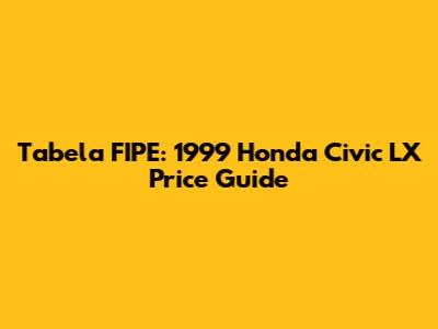 Hey guys! Are you digging into the Tabela FIPE to figure out the value of a 1999 Honda Civic LX? You've landed in the right spot! This guide will walk you through everything you need to know about the Tabela FIPE and how it relates to this classic car. We'll break down what the Tabela FIPE is, why it's important, and how to use it to get an accurate valuation. Whether you're buying, selling, or just curious, let's dive in and get you up to speed!