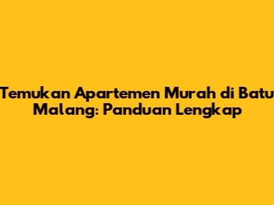 Temukan Apartemen Murah Di Batu Malang: Panduan Lengkap