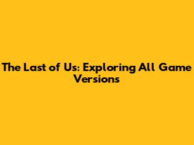 The Last Of Us: Exploring All Game Versions