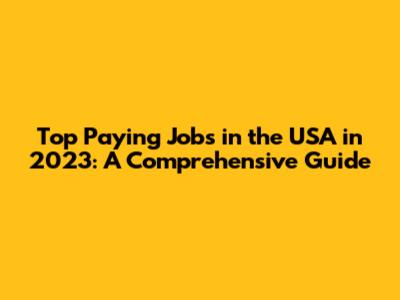 Top Paying Jobs In The USA In 2023: A Comprehensive Guide