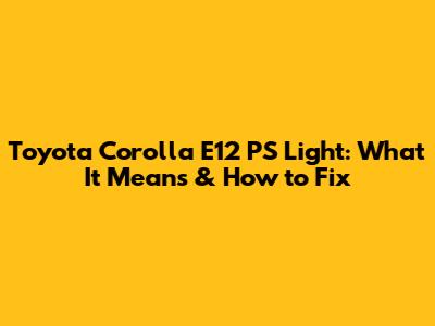 Toyota Corolla E12 PS Light: What It Means & How To Fix