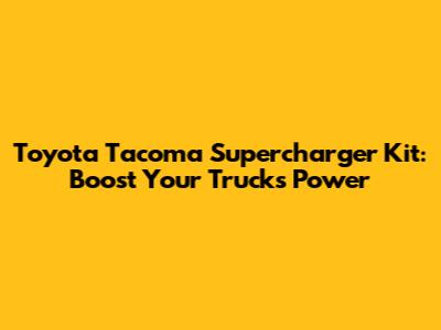 Toyota Tacoma Supercharger Kit: Boost Your Truck's Power