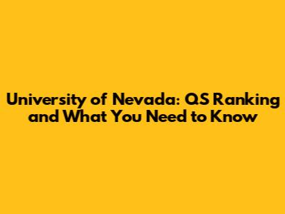 University Of Nevada: QS Ranking And What You Need To Know