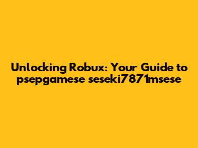 Unlocking Robux: Your Guide To Psepgamese Seseki7871msese