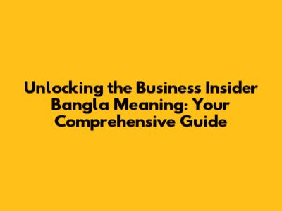 Unlocking The Business Insider Bangla Meaning: Your Comprehensive Guide