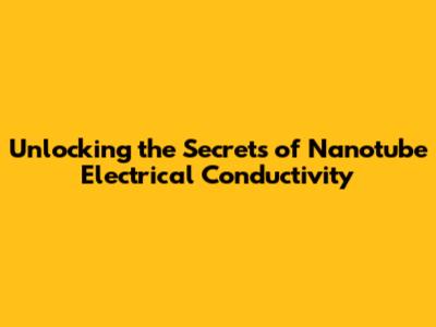 Unlocking The Secrets Of Nanotube Electrical Conductivity